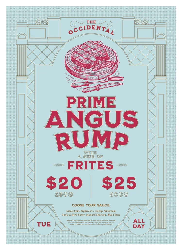 Join us Tuesday to satisfy that Angus Rump craving! Enjoy a half kilo of steak cooked to perfection. Served with fries.