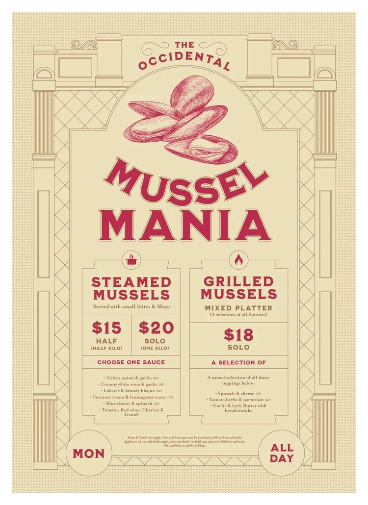 Grab a half pot for $15 or a one kilo pot for $20. Available all day Monday on steamed and grilled mussels.